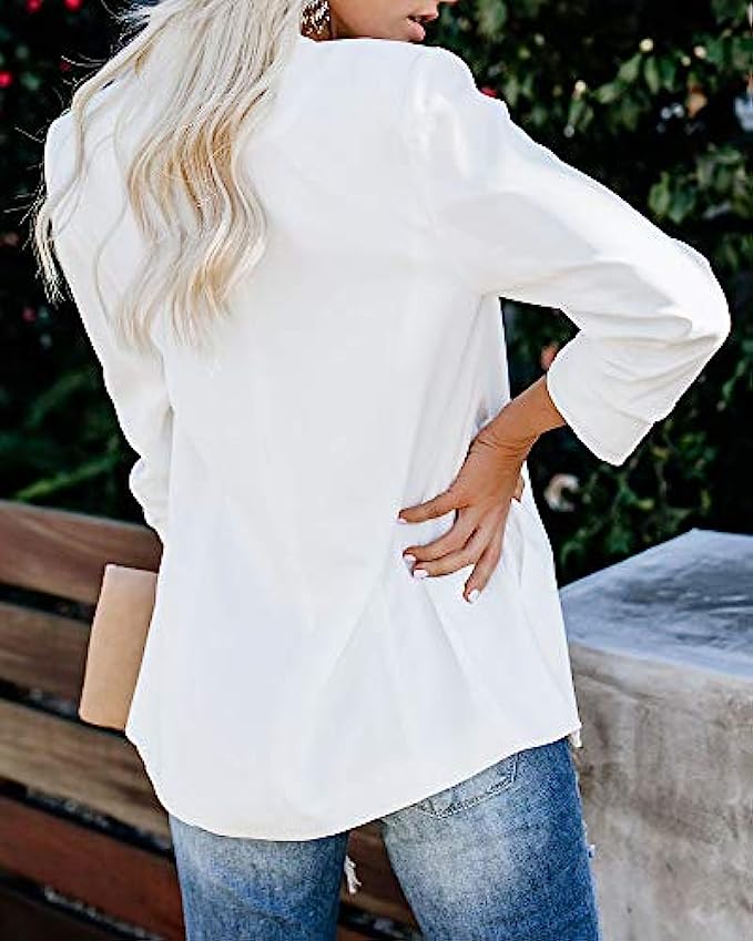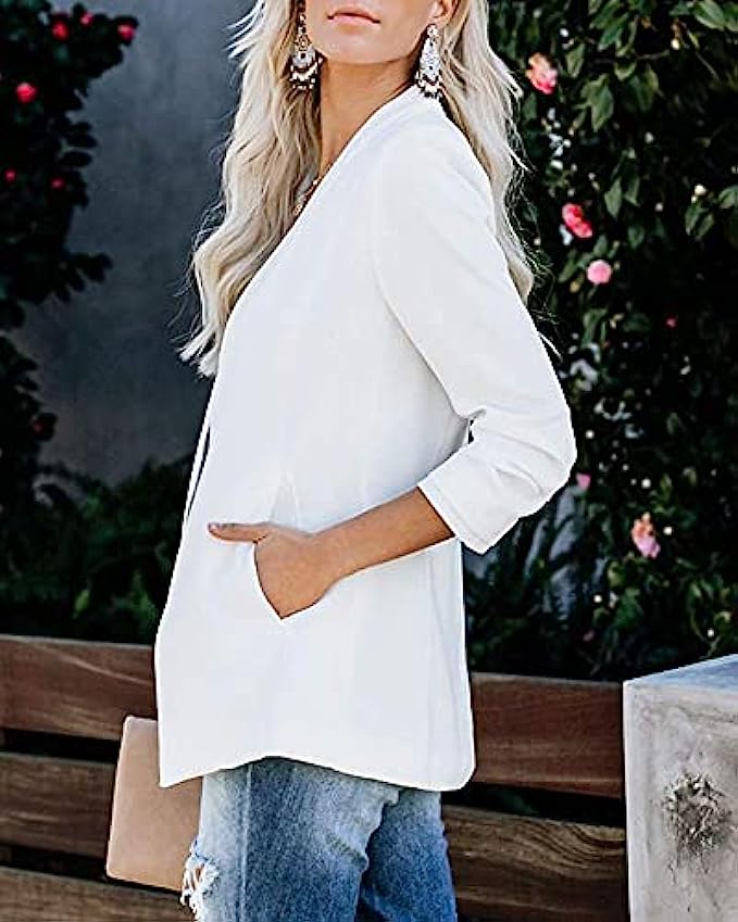 Ofenbuy Womens Casual Blazer Ruched 3/4 Sleeve Open Front Relax Fit Office Lightweight Cardigan Jacket Blazers Coats