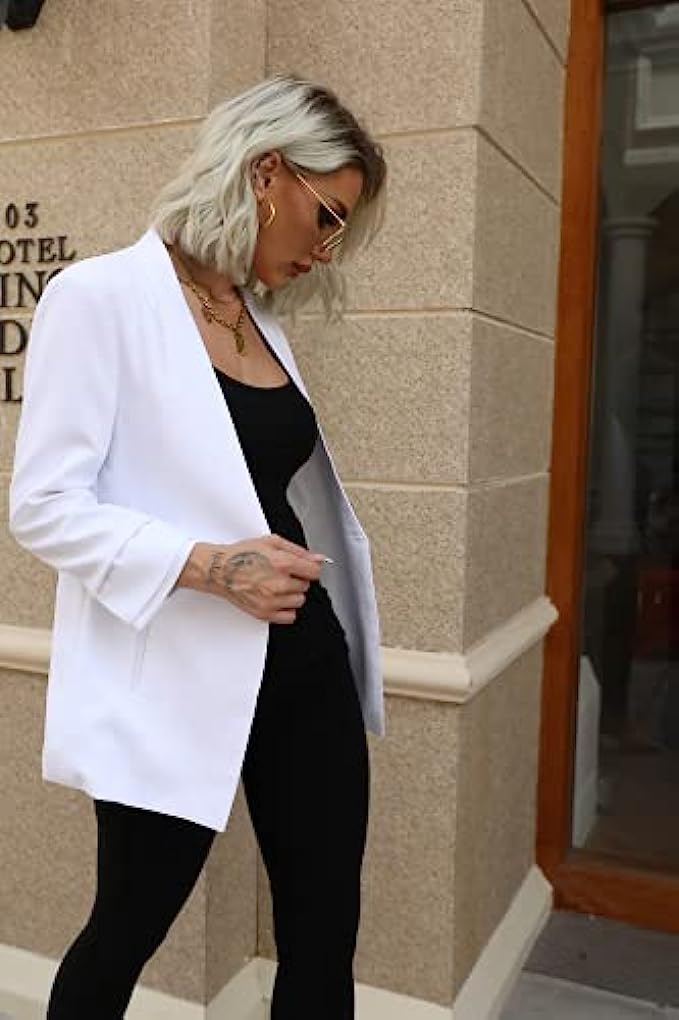 • Features: Womens Casual Blazers Open Front Long Sleeve Work Office Jackets Blazer, Lapel Collar, Two Pockets, Loose Fit, Solid Color Basic Business Jackets Coat.